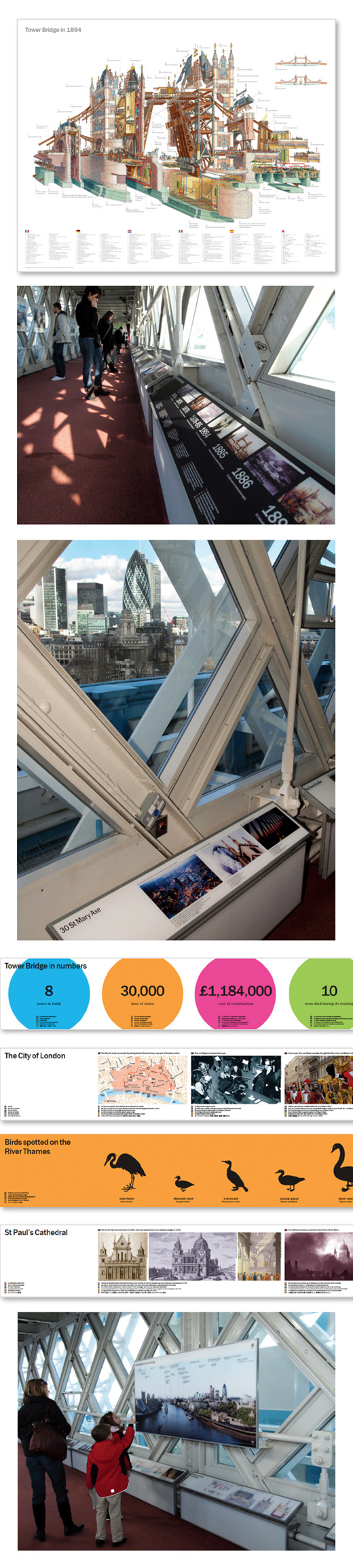 Tower Bridge receives thousands of visitors every year who come to see the most well-known moving bridge in the world. We were asked to redesign their main exhibition explaining the origins of the bridge, its design and workings.