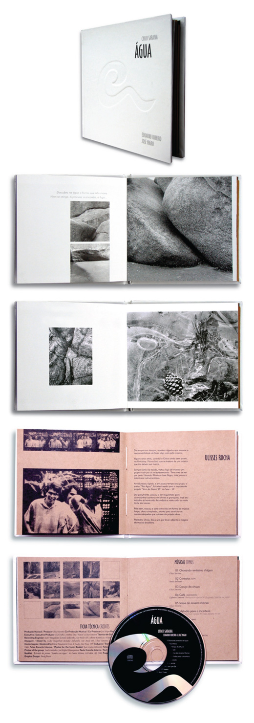 The design of the CD was based on a collection of water photographs that Chico felt compelled to use, and an excerpt from a poem about water by Dante Milano. The final design was produced on two different paper stocks to distinguish between different kinds of information: a coated white paper for the photographic essay and an uncoated brown paper used for all the other texts.