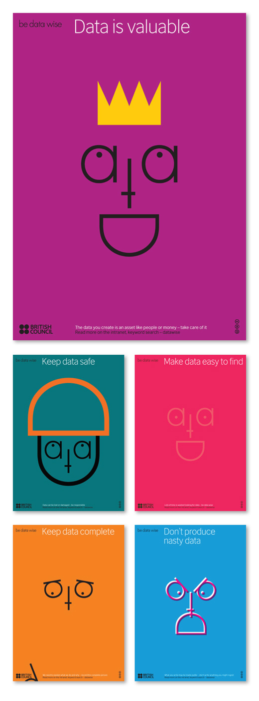 We were briefed by the British Council to come up with an internal poster campaign to create awareness about data, without making it seem enforced or oppressive. Or, in other words, to make it seem fun and interesting.