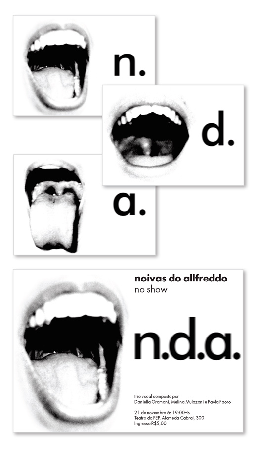 Three giant mouths – one from each singer – were used to promote the group. To increase the impact of the promotion, we created a teaser campaign two months before the concert, in which the poster was displayed without any explanatory text. A couple of weeks later we replaced the posters with similar ones, but now containing all the details for the gig. The promotion worked well and several people who hadn't heard about the group confessed coming to the show out of curiosity generated by the posters.