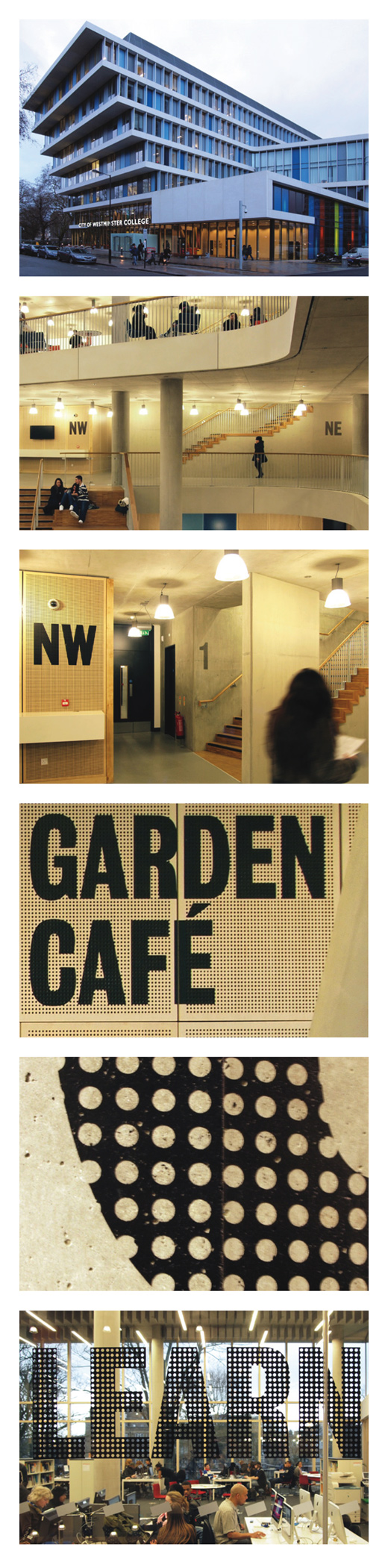 The City of Westminster College has just opened its brand-new, state-of-the art Paddington Green Campus, in central London. Besides designing the new brand, we were commissioned to design the signage system for the new building in collaboration with Whybrow Signing Consultants.