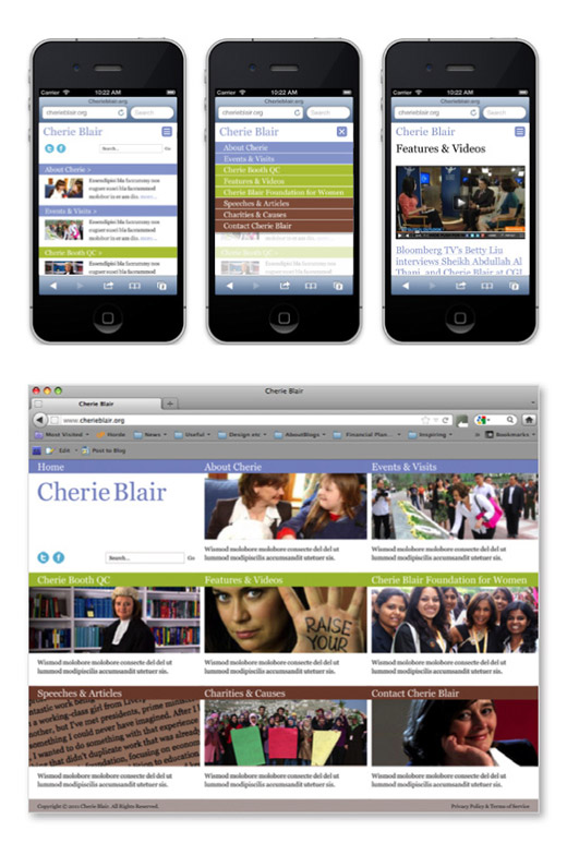 An active barrister since 1976 and a diligent campaigner on human right issues, Cherie Blair has spoken across the world on this topic and is closely involved with over 20 charities devoted to women, children and human rights. After leaving Downing Street no.10 in 2007, she asked us to design a website to promote this work and serve as a networking platform.